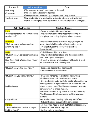 Preschool Aquatics Level 1 Sample Block Plan Develop block plans and lesson plans to meet your Swimming and Water Safety manual, Water Safety Instructor’s Manual with CD-ROM, Teaching Swimming and Water Safety DVD, Longfellow’s WHALE Tales K–6 Educational Packet. ... Document Viewer
