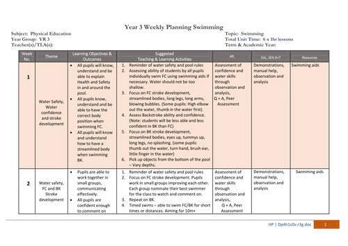 Swimming At Key Stages 1 And 2 Schemes Of Work And Session ...