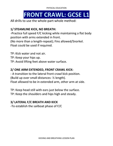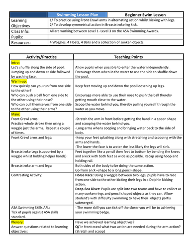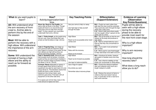Important Note: These block and lesson plans are samples only and are in no way intended to serve as a recommended way to deliver the lessons. Develop block plans and lesson plans to meet your specific needs. swimming. c. 4 × 25 front crawl ... Retrieve Here
